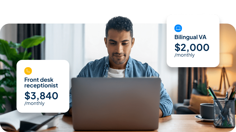 Labor costs are eating into your margins. A U.S. front desk receptionist averages $3,840 monthly with taxes and benefits. A bilingual VA? Roughly $2,000.